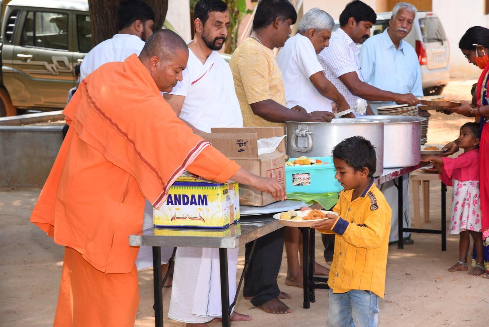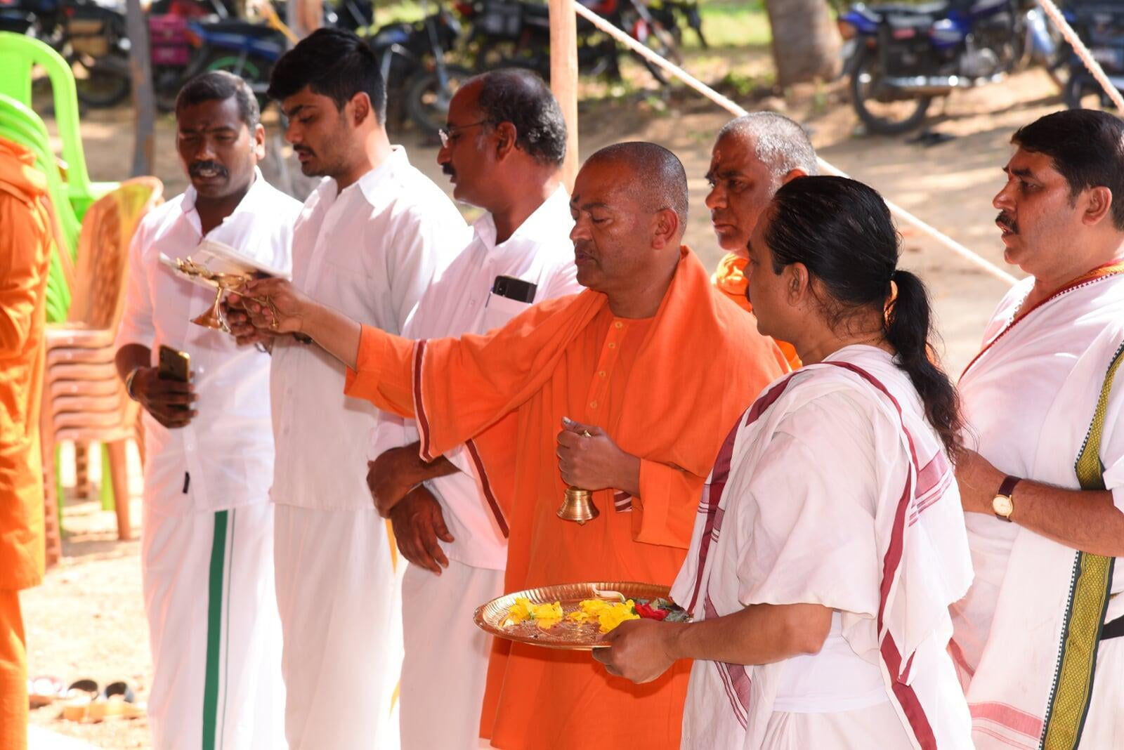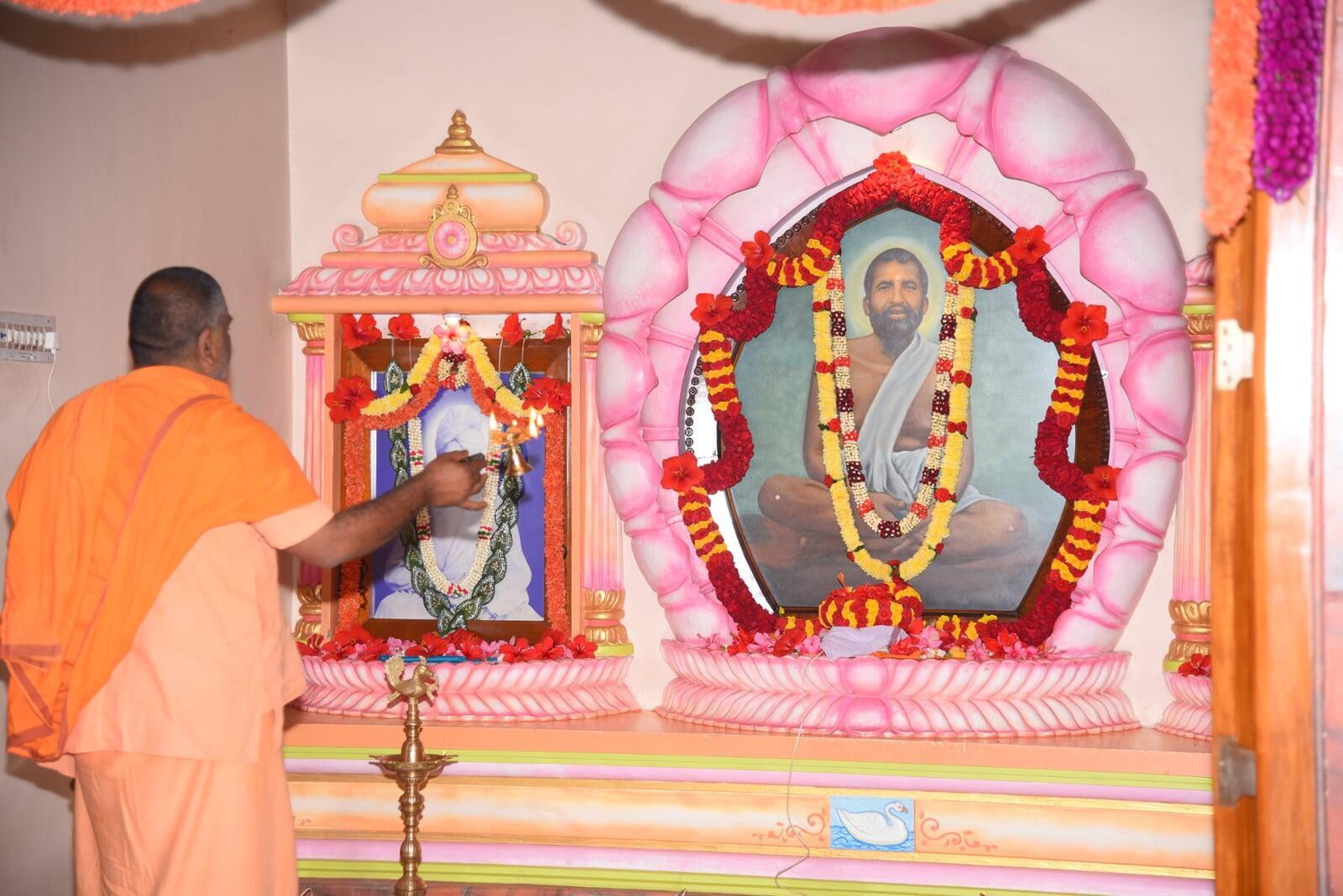 Sri Ramakrishna Vidyarthi Mandiram is a hostel for college boys which provides  boarding  for economically backward students. Long ago, when Swami Prabhuddhananji’s wardenship one Sri Yellappa had stayed in Vidyarthi Mandiram to pursue his studies in Bangalore. Later he completed MBBS, MD and thus became Dr. Yellappa. The  guidance he got there and the lives of the holy trio made great impact on his life. With a thought that this should also be bestowed upon his village (villagers) Neralakunte in Pavagada Taluk, he started Sri Ramakrishna Paramahamsa Ashrama. He constructed a prayer hall, rooms for medical dispensary and sadhu nivas. Three years ago this was handed over to Ramakrishna Math, Bangalore. Birth anniversaries of the Holy Trio, medical dispensary on third Sunday of every month, spreading Swami Vivekananda’s message to students of nearby school, workshops by IHR for farmers are organised by the Ashrama. In addition satsanga (retreats) are also organised. Now, this centre is Rural Centre of Ramakrishna Math, Basavanagudi, Bangalore